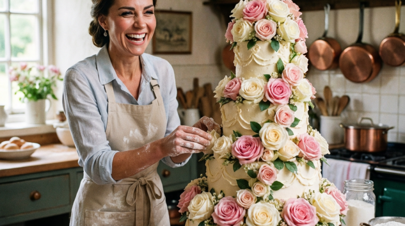 “SHE DIDN’T ASK FOR A CHEF.” — PRINCESS KATE’S BIRTHDAY CAKE LEFT ROYAL WATCHERS IN TEARS No palace spectacle. No towering candles. Just quiet hands, soft cream, and a woman who has survived one of the hardest years of her life. On her birthday, Catherine, Princess of Wales chose to do something no one expected — she baked her own cake. The cake itself feels like a reflection of Catherine’s soul. A classic round shape, iced in warm ivory tones. Handcrafted roses in blush pink and white, each one delicately placed, alive with gentle green leaves. At the very top, a tiny golden crown — not loud, not grand, just quietly regal. And written in graceful script: “Happy Birthday Catherine.” Royal insiders say this wasn’t about tradition or thrift. It was about normalcy. About reclaiming peace. After months of illness, uncertainty, and private battles, this small, intimate act symbolized something far bigger: I’m still here. I’m grateful to be alive. Fans across the world are calling it “the most Catherine thing imaginable”…