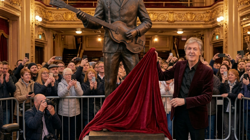 When the cloth was finally lifted, the bronze figure revealed a timeless image: McCartney standing with his iconic bass, calm and reflective—the very spirit of a songwriter who helped redefine modern music.