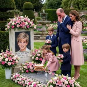 🌸 A Moving Family Tribute: The Wales Family Honors Princess Diana In a quiet garden filled with soft pink roses and blooming lilies, Prince William and Catherine Princess of Wales…
